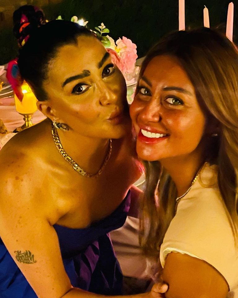 باللون الأزرق.. إطلالة مثيرة للفنانة المصرية غادة عبدالرازق مع ابنتها روتانا