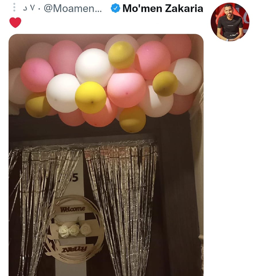 قال نجم كرة القدم في النادي الأهلي اللاعب مؤمن زكريا أنه رزق بطفلة جديدة وأسماها "نيلي".