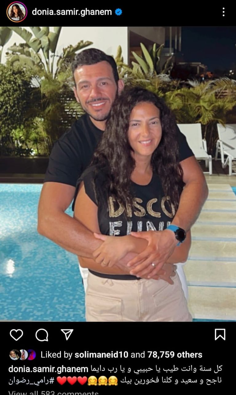 الفنانة المصرية دنيا سمير غانم توجه رسالة رومانسية لزوجها الإعلامي رامي رضوان (صورة)