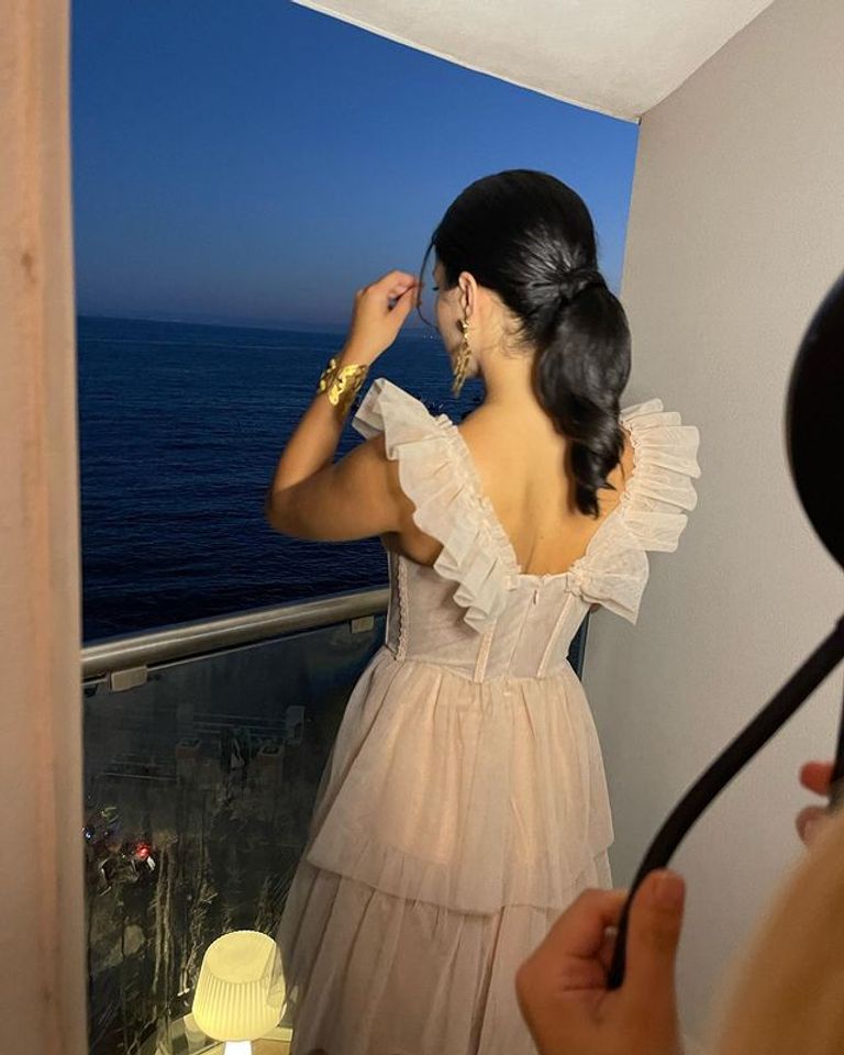 وعلقت سينتيا على الصور بقولها: "مجموعة صور وفيديوهات تلخص ليلة البارحة في صقلية في مهرجان تورمينا للسينما وليلة Woman in Cinema".