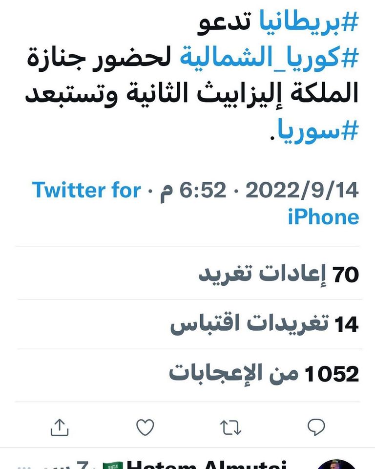 جاء ذلك الهجوم بسبب عدم دعوة الملك تشارلز الثالث لسوريا إلى حضور جنازة الملكة إليزابيث الثانية المقررة الإثنين المقبل.