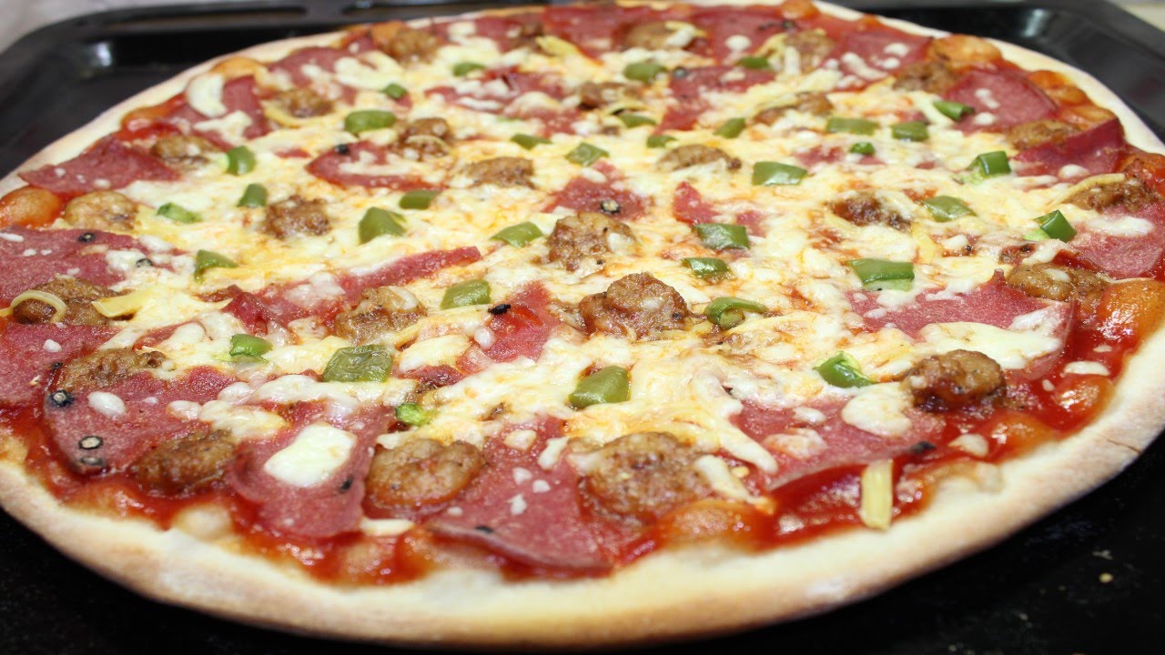 - تترك عجينة البيتزا في مكان مظلم ودافئ لتختمر مدة ساعة على ساعتين ثم تفرد على سطح صلب مرشوش دقيق.