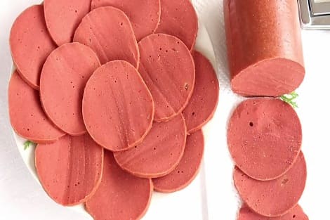 - يترك اللانشون حتى يهدأ تماما ثم يتم إخراجه من الكيس وتقطعيه بالسكين إلى شرائح.