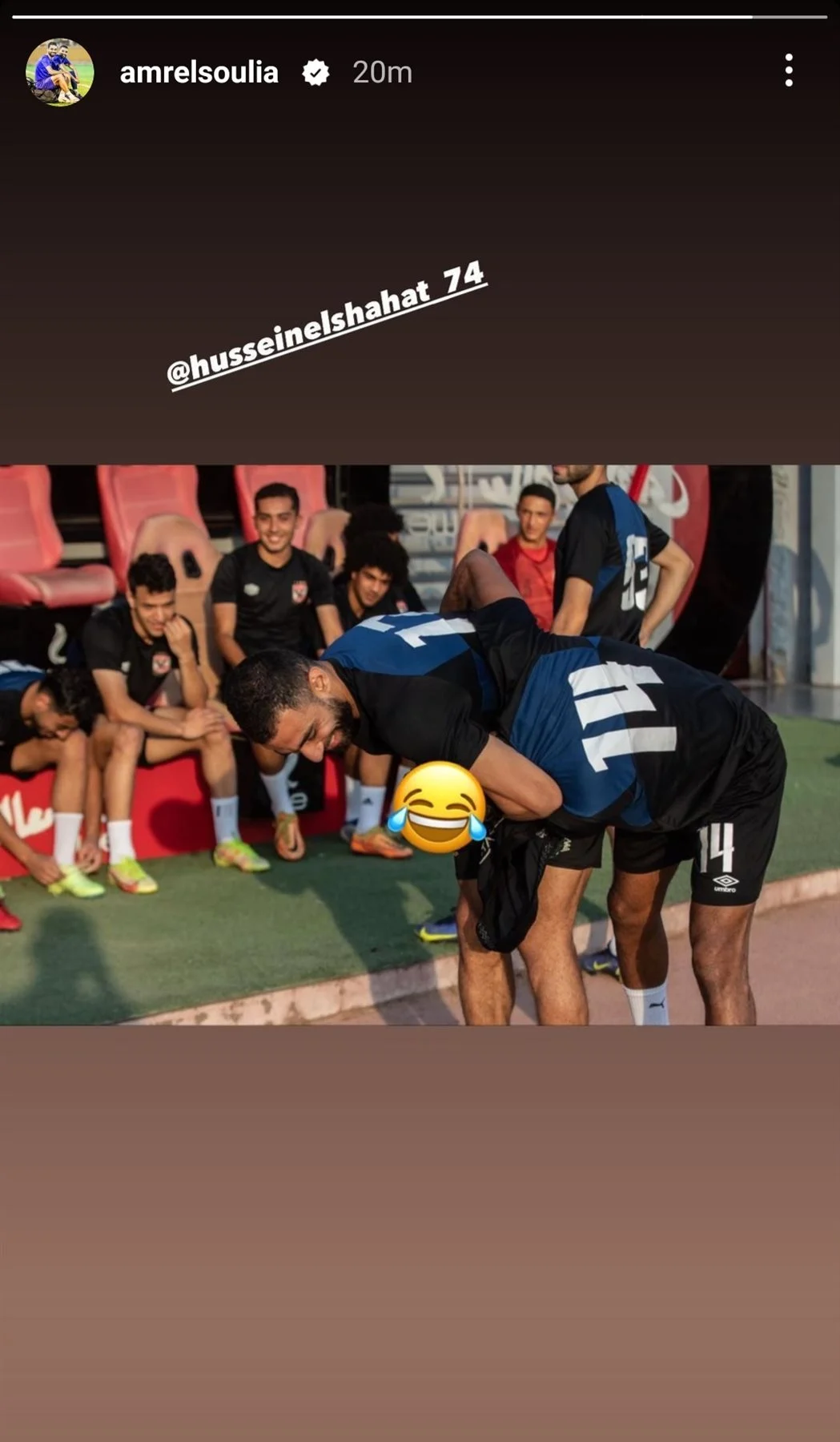 جاء ذلك نشر النجم عمرو السولية، صورة له من تدريبات الأهلي، وذلك عبر حسابه الرسمي إنستجرام.