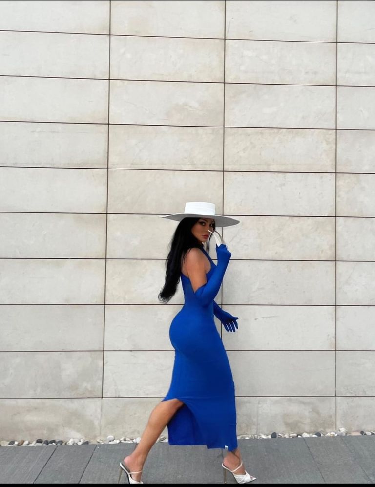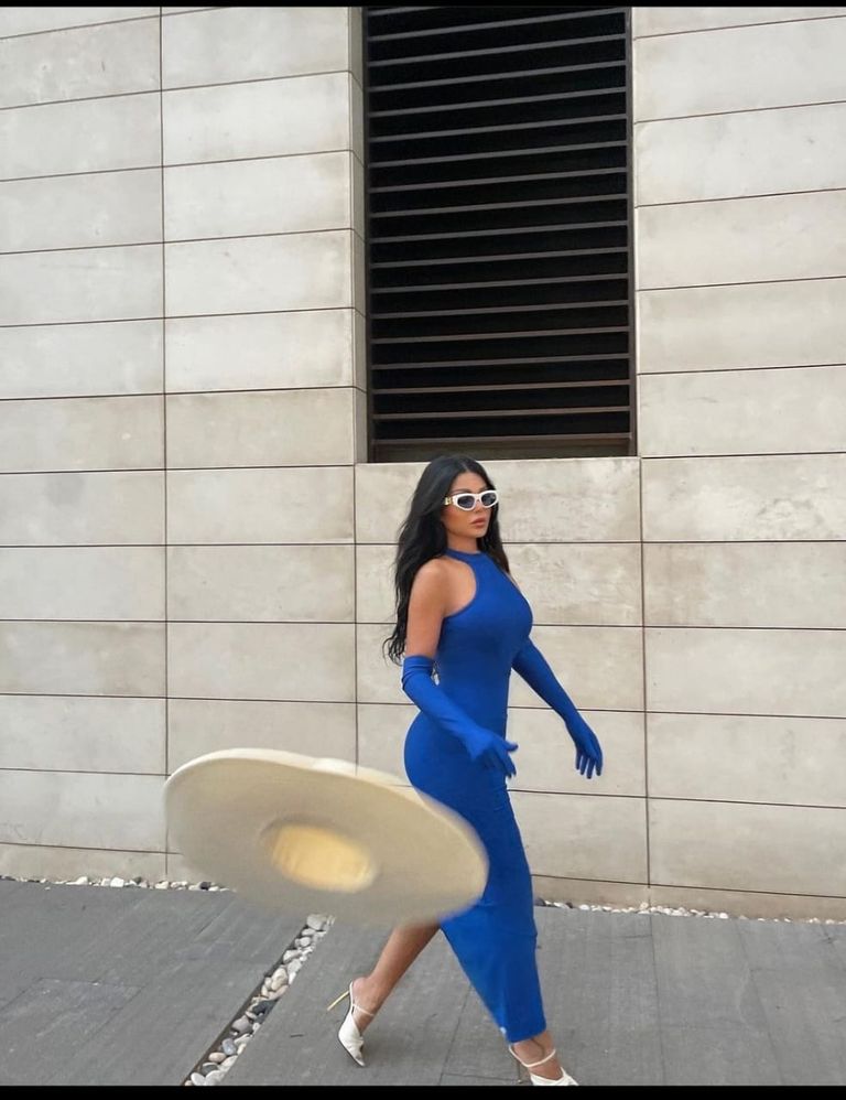 بفستان أنيق باللون الأزرق الزهري.. إطلالة مثيرة للنجمة اللبنانية هيفاء وهبي (صور)