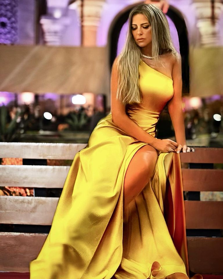 وتألقت ريم مصطفى بفستان أصفر لامع أبرز أنوثتها، وتركت شعرها الأشقر منسدلا على كتفيها بطريقة جذابة.