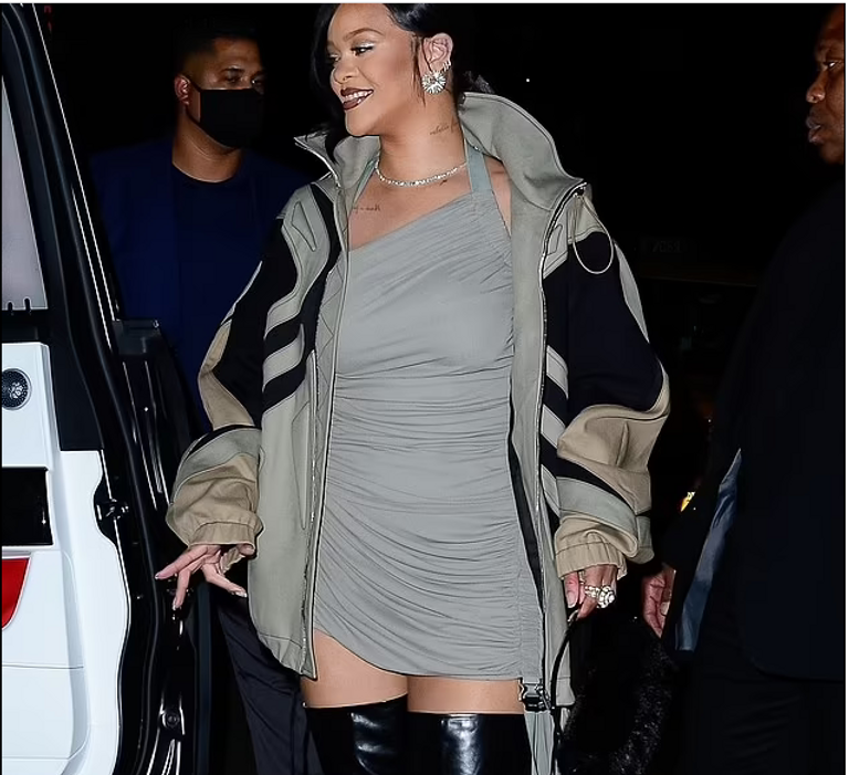 وبحسب موقع "ديلي ميل" البريطاني، ارتدت ريهانا، 34 عامًا، أحذية جلدية سوداء تصل إلى الفخذ، الذي انكشف جزء منه مع قصر الفستان.