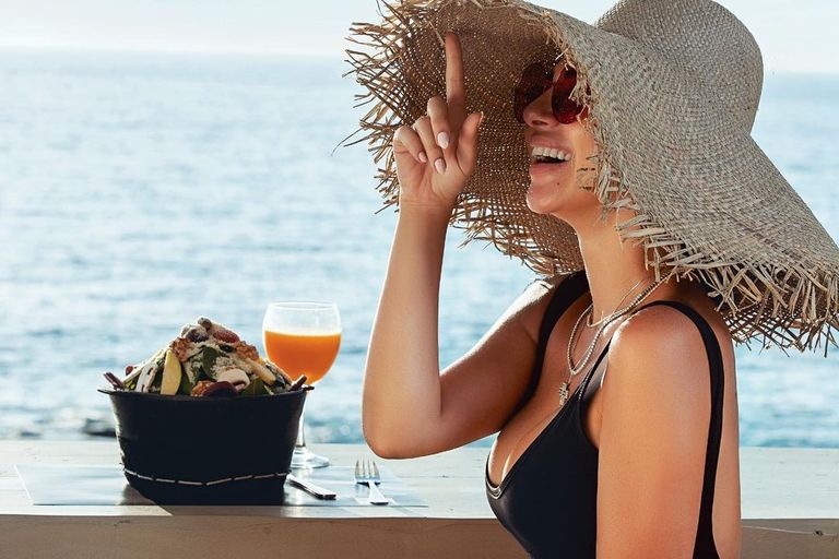 كما أنه في بعض الصور تركت شعرها منسدلا على كتفيها، بينما في أخرى وضعت قبعة ضخمة غطت كل شعرها وأغلب وجهها، فلم تظهر منه سوى نظارة شمس سوداء وضحكة خاطفة.