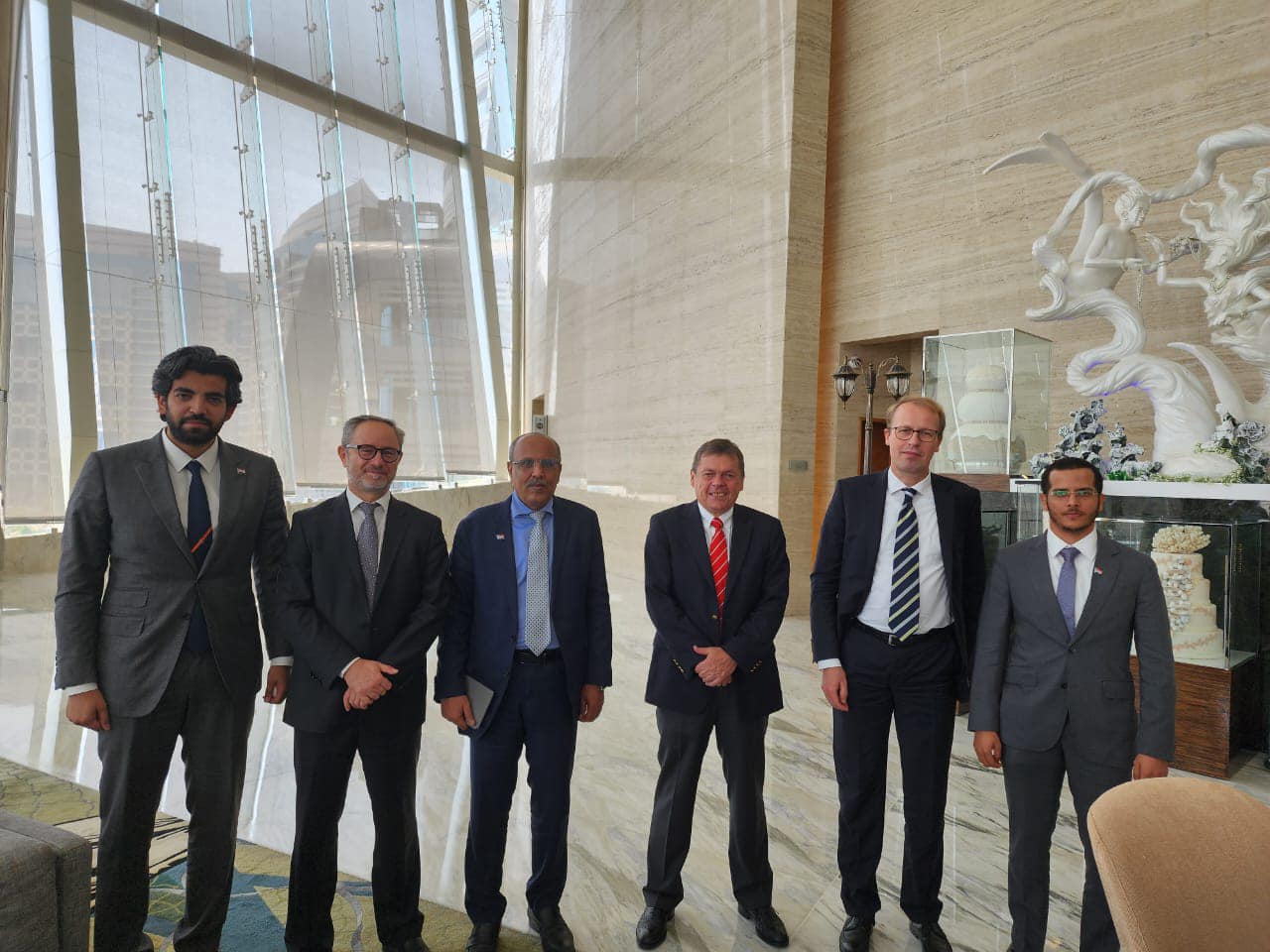حضر اللقاء السيد فيليب شونبرون-نابمان، نائب رئيس وحدة الشرق الأوسط في الخارجية الألمانية، وعضوا الإدارة العامة للشؤون الخارجية نبيل بن لعسم، وعبد الله عوض.