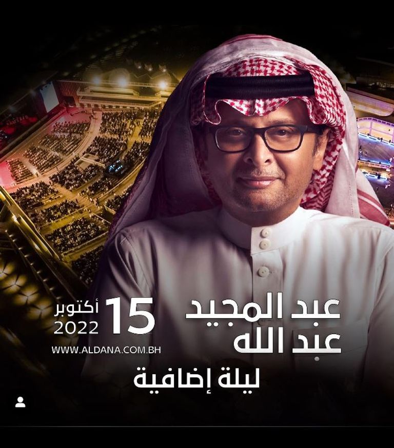 حيث أوضحت شركة روتانا، عبر "إنستجرام"، أنه تم إضافة حفل ثان للفنان عبدالمجيد عبدالله في البحرين يوم السبت 15 أكتوبر".