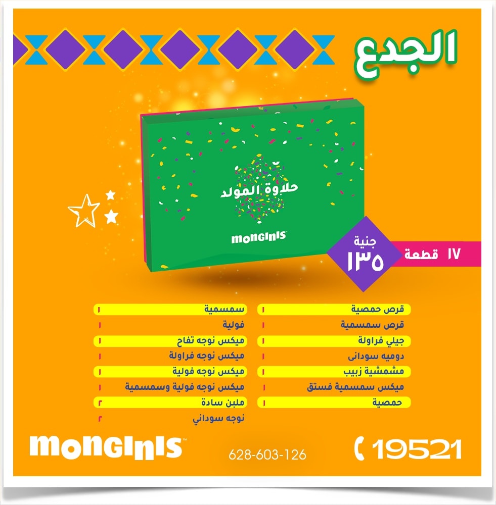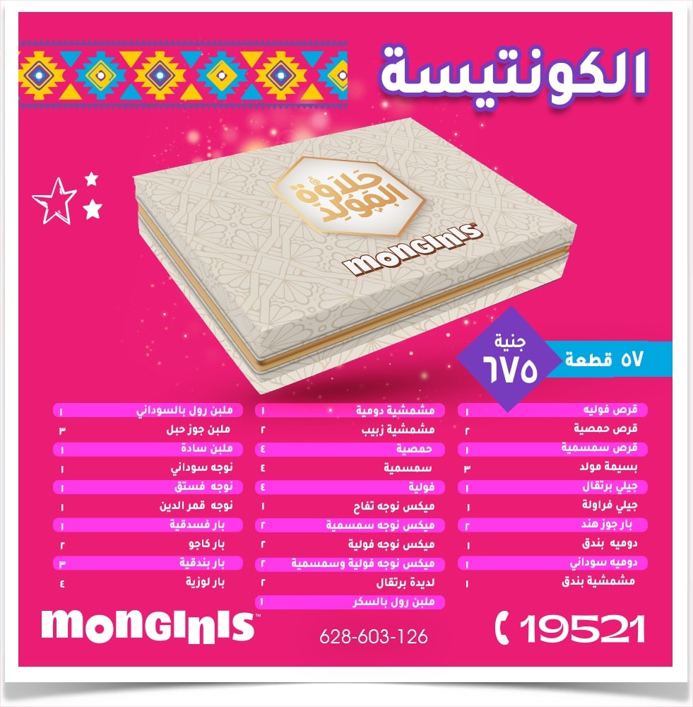 تحتوي عروسة المولد في محلات مونجيني على هذه القطع من الحلوى: