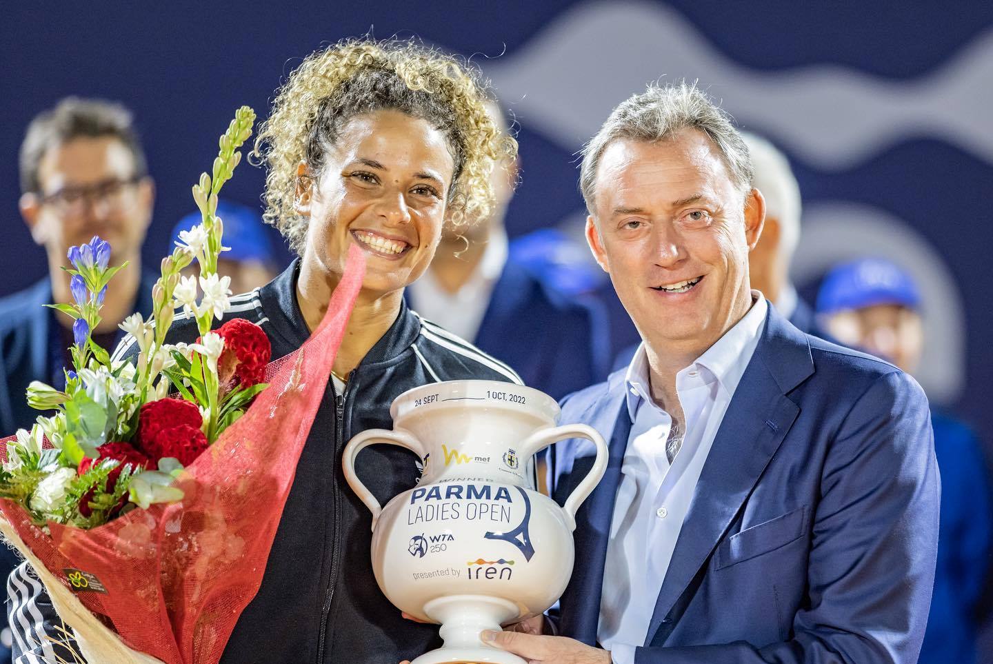 وتغلبت ميار شريف في المباراة النهائية على المصنفة السابعة عالميًّا اليونانية ماريا سكاري، بنتيجة 7-5 و6-3 في نهائي بطولة بارما المفتوحة للسيدات، السبت الماضي.
