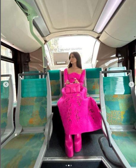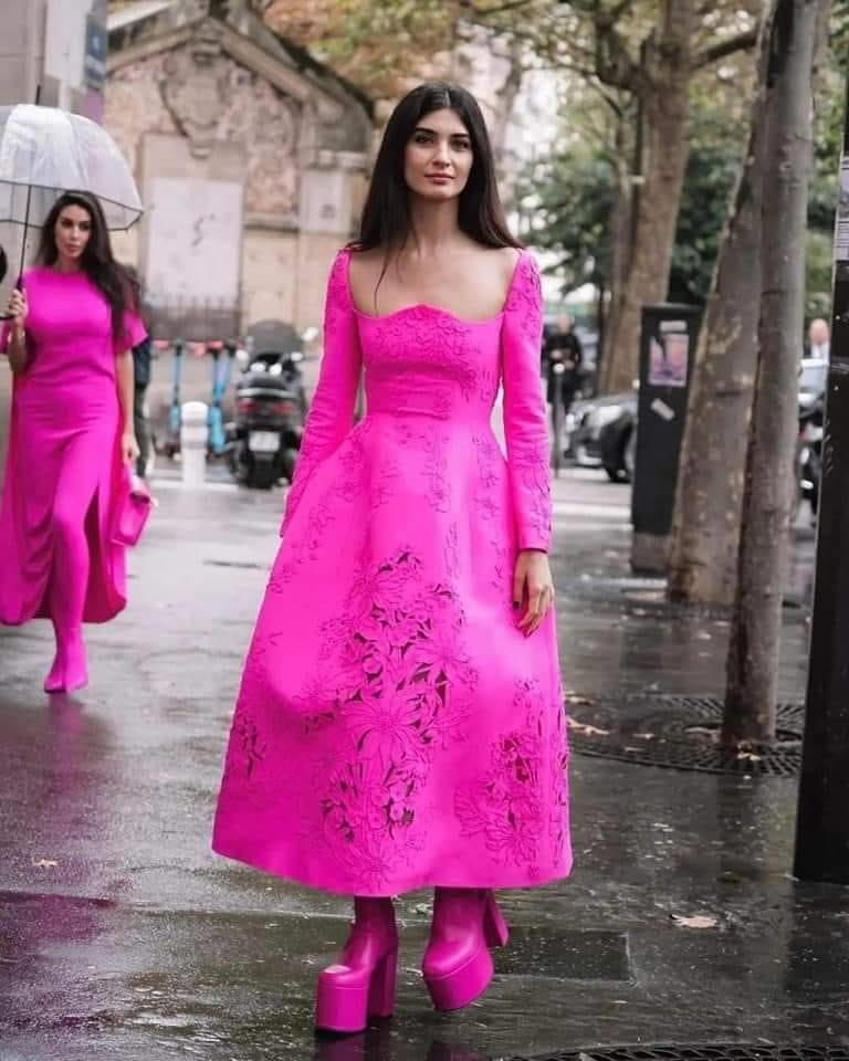 وظهرت "ياسمين" و"توبا" في أحد شوارع العاصمة الفرنسية، وكل منهن ترتدي فستان باللون "الفوشيا".