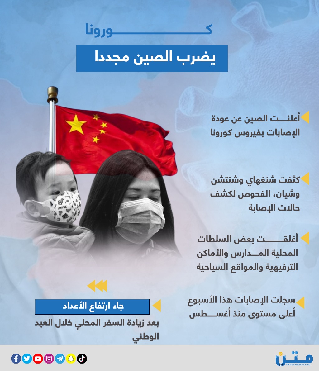 - أعلنت الصين عن عودة الإصابات بفيروس كورونا