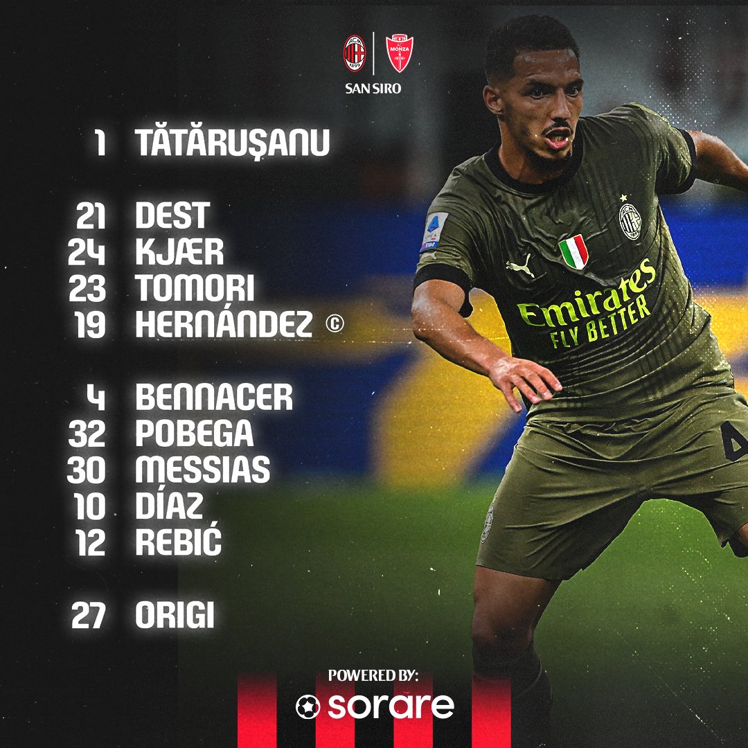 وجاء تشكيل ميلان ضد مونزا كالتالى: تاتاروشانو – ديست - كايير - توموري – ثيو هيرنانديز – إسماعيل بن ناصر - بوبيجا - ميسياس - دياز - ريبيتش – أوريجي.