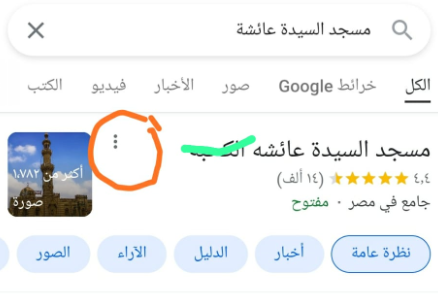 - الضغط على الثلاث نقاط الظاهرة بجانب الاسم على صفحة جوجل.