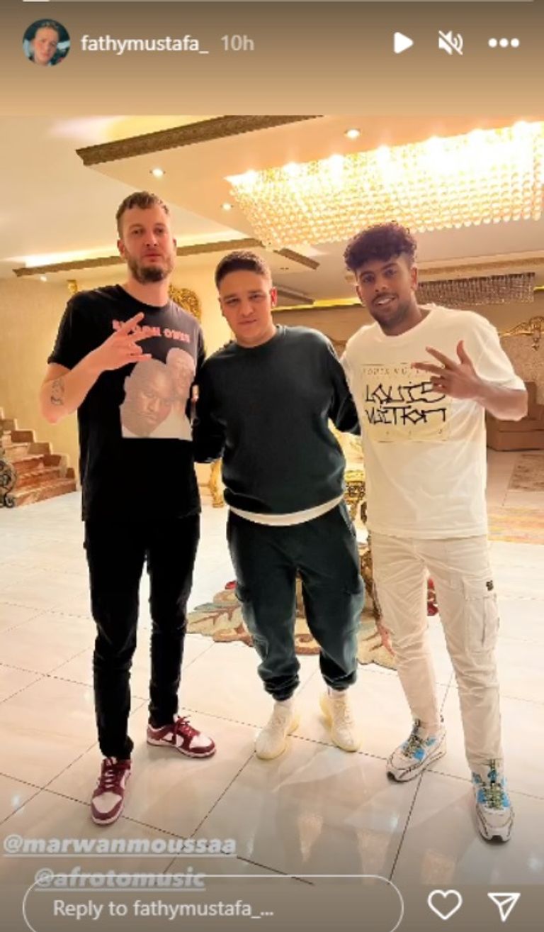 كما ظهر الأخوان "فتحي" و"نور"، ابنا نقيب الموسيقيين، رفقة مطربي الراب داخل منزل مصطفى كامل، وهو ما أثار دهشة عدد من مستخدمي مواقع التواصل الاجتماعي.