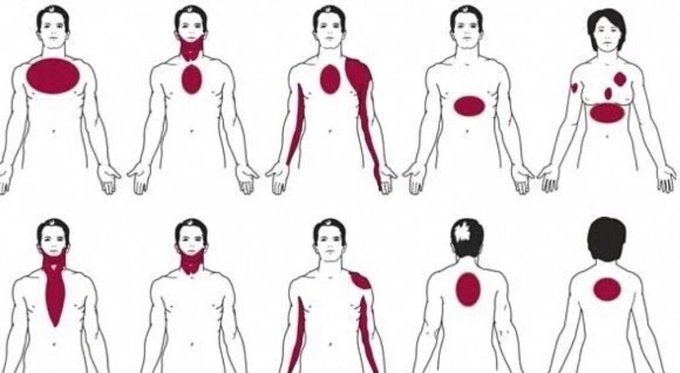 - آلام في الذراع أو الرقبة أو الكتف أو الفك أو الظهر.