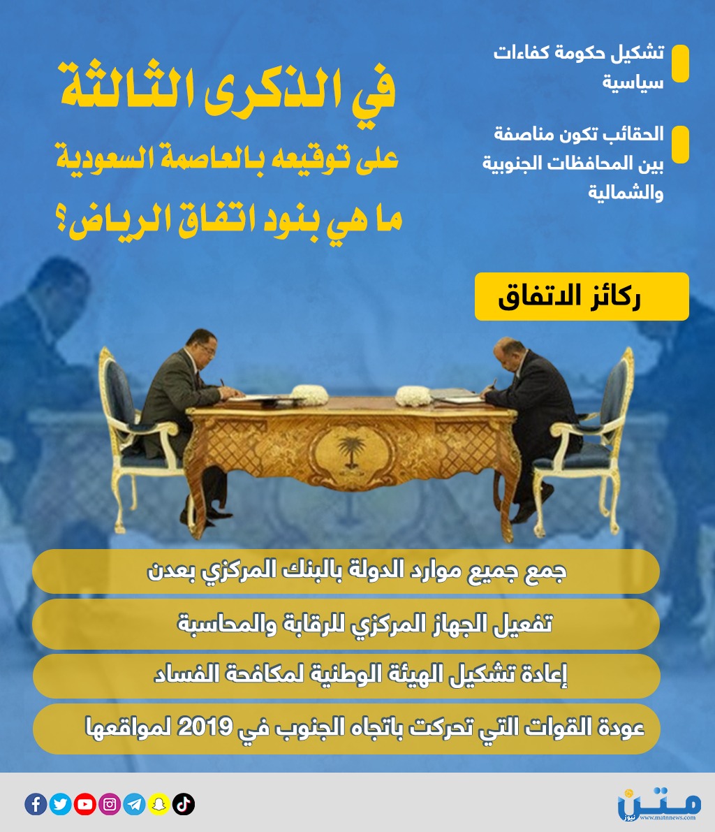 في الذكرى الثالثة على توقيعه بالعاصمة السعودية.. ما هي بنود اتفاق الرياض؟