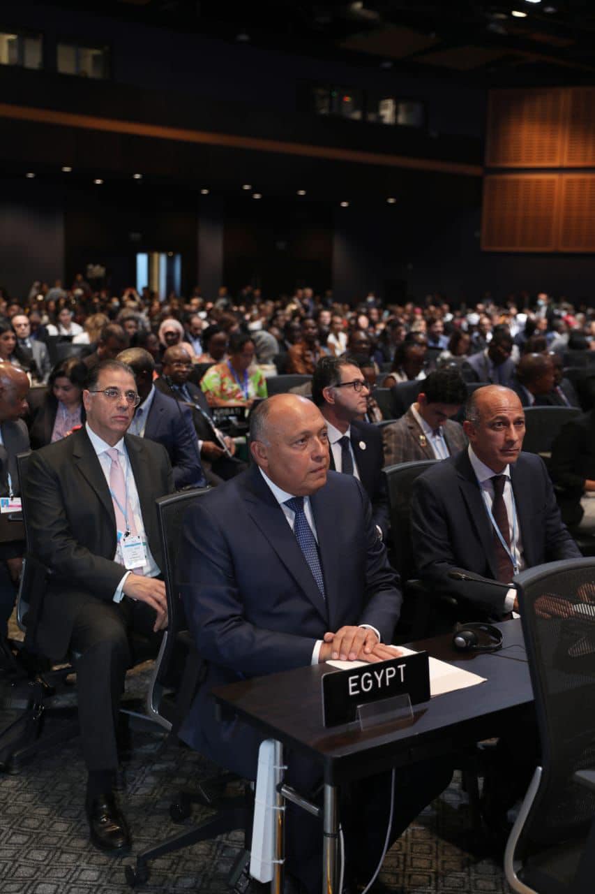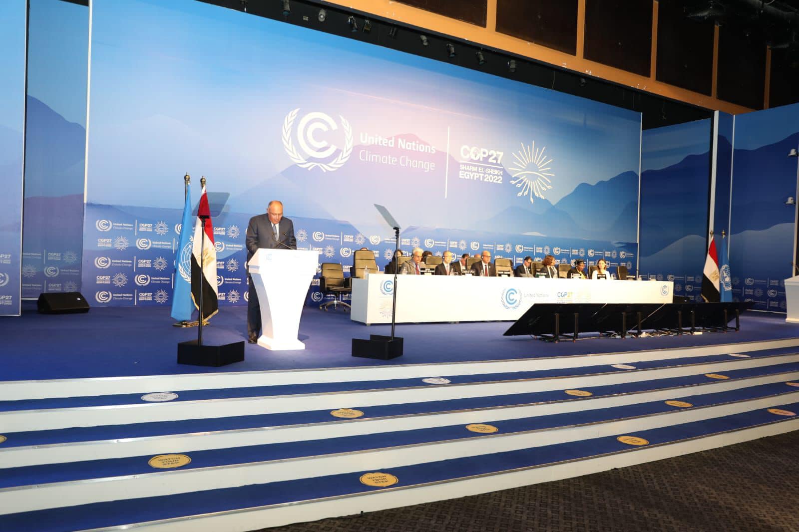 وقد ألقى الوزير شكري كلمة بهذه المناسبة حرص خلالها على الإعراب عن التقدير لاختيار مصر لاستضافة هذا الحدث الدولي الضخم، مؤكدًا أن مصر لن تدخر جهدًا لتحقيق أهداف المؤتمر وستعمل على توفير كافة الظروف من أجل انجاح هذا الحدث الهام وضمان خروجه بالنتائج المنشودة. وأضاف أن المؤتمر يمثل فرصة لكي تؤكد كافة الأطراف المعنية على امتلاكها للإرادة السياسية اللازمة لمواجهة التحديات الناجمة عن تغير المناخ في خضم التوترات الدولية الحالية التي ألقت بظلالها على الجميع وترتب عليها أزمات في امدادات الغذاء والطاقة، مشددًا على أن الوقت قد حان لكي تنتقل كافة الأطراف المعنية بعمل المناخ الدولي من مرحلة المفاوضات والتعهدات إلى مرحلة التنفيذ.