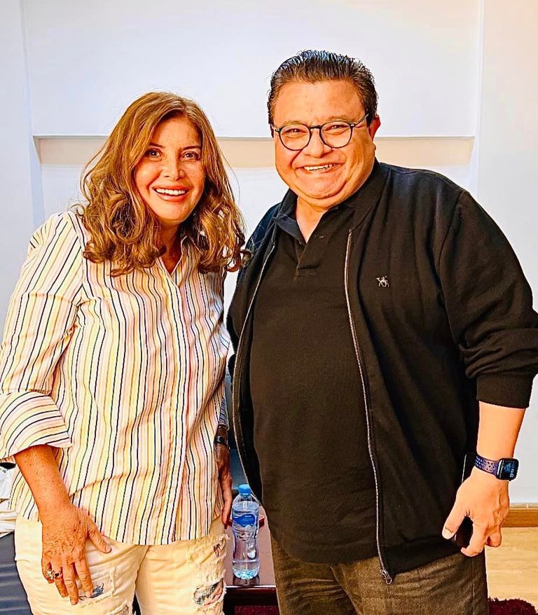 وعلق خالد جلال على الصور: “دنيا سمير غانم تدعو القمر ميرفت أمين لمشاهدة بروفة ”أنستونا). كل الفخر والمحبة والاحترام. لا قوة إلا بالله".