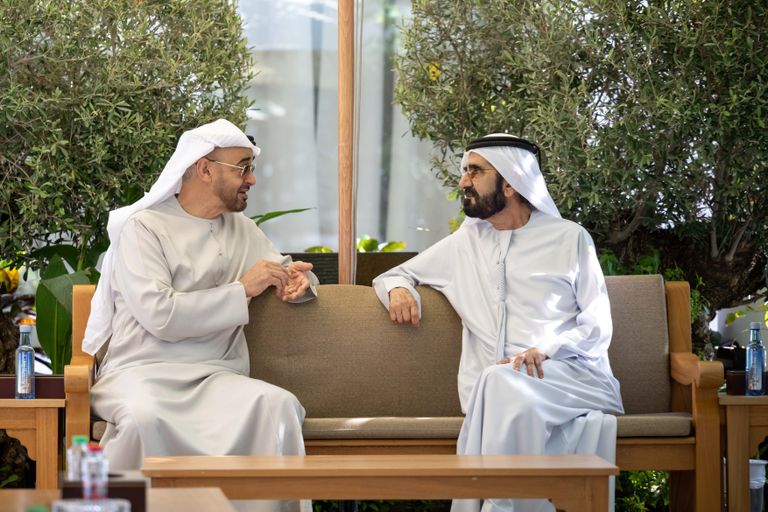 التقى الشيخ محمد بن زايد آل نهيان، رئيس دولة الإمارات اليوم الشيخ محمد بن راشد آل مكتوم نائب رئيس دولة الإمارات رئيس مجلس الوزراء حاكم دبي.