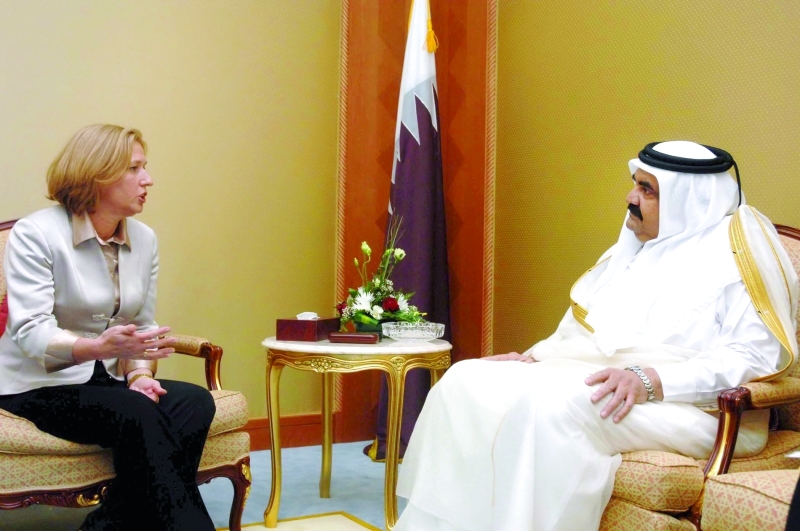 وفى أبريل 2008، زارت وزير الخارجية الإسرائيلي ليفني، قطر، في أول زيارة لها إلى منطقة الخليج بناء على دعوة حمد بن خليفة أل ثاني، وعقدت ليفني العديد من الاجتماعات، بما في ذلك لقاء مع الأمير.