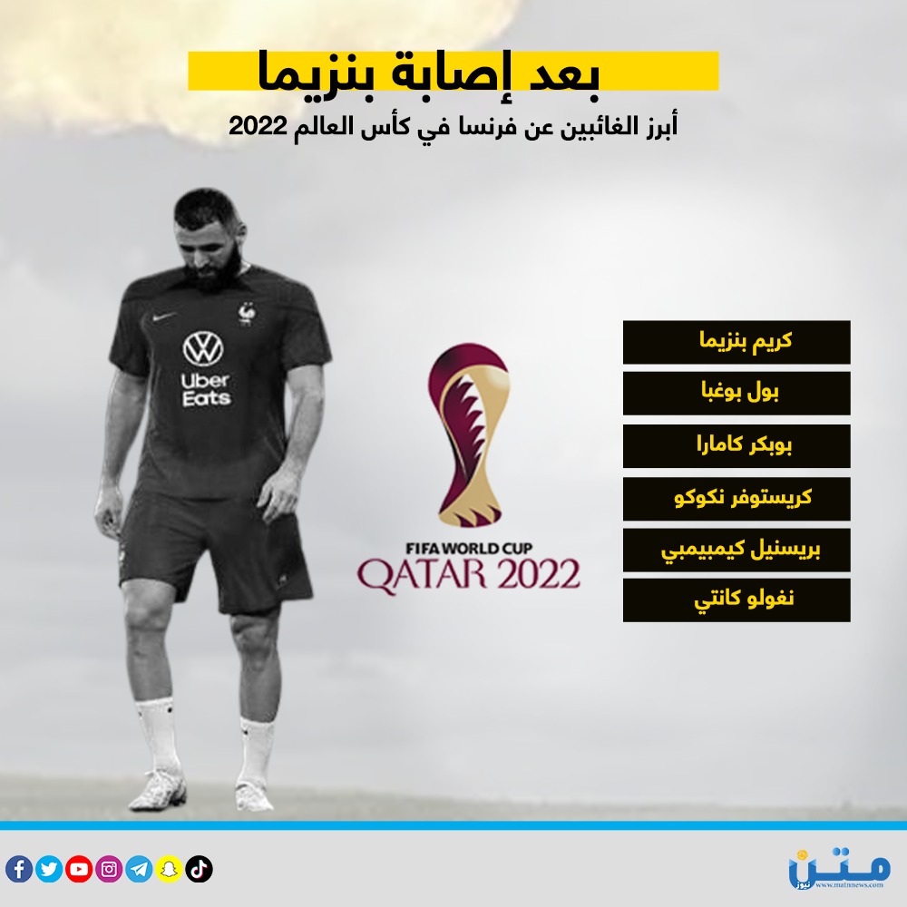 بعد إصابة بنزيما.. أبرز الغائبين عن فرنسا في كأس العالم 2022 كريم بنزيما الأحد 20/نوفمبر/2022 - 05:01 م 11/20/2022 5:01:23 PM انفوجراف متن محمد حسن شارك طباعة كريم بنزيمابول بوغبابوبكر كاماراكريستوفر نكوكوبريسنيل كيمبيمبينغولو كانتي شارك كريم بنزيما كأس العالم 2022 كاس العالم العالم بنزيما