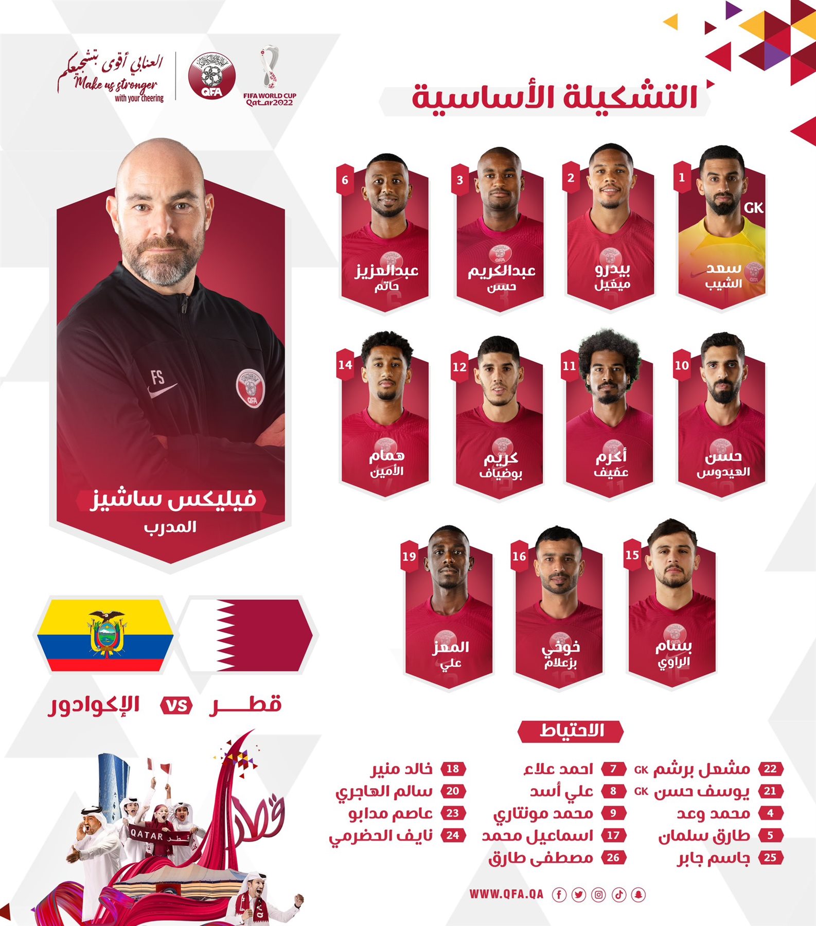 التشكيل الرسمي لمباراة قطر والإكوادور في افتتاح كأس العالم 2022