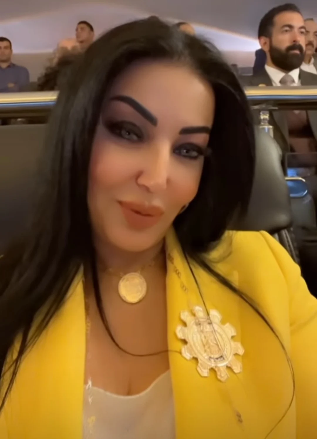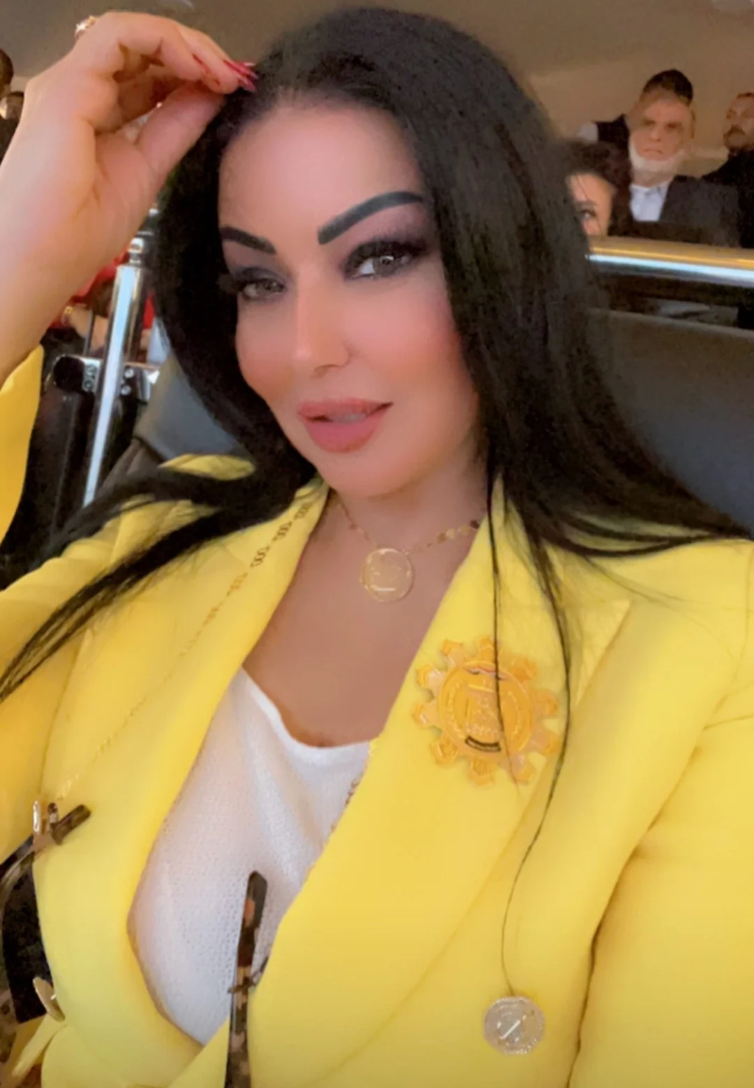 حيث ظهرت سمية الخشاب بإطلالة إنثوية جذابة، مرتدية بدلة انيقة باللون الأصفر، مما عكس ذوقها الرفيع وذكائها في اختيار ما يناسب قوامها، واعتمدت تسريحة شعر مميزه ووضعت مكياجا جذابا مرتكزا على الألوان الترابية مع لون الكشمير كأحمر شفاه.