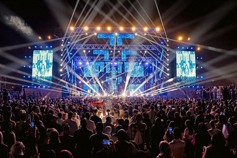 حيث شهد الحفل حضورا كبيرا من الجاليات العربية التي تتواجد في قطر، كما حرص بعض الحضور على رفع علم مصر ترحيبا بالهضبة.