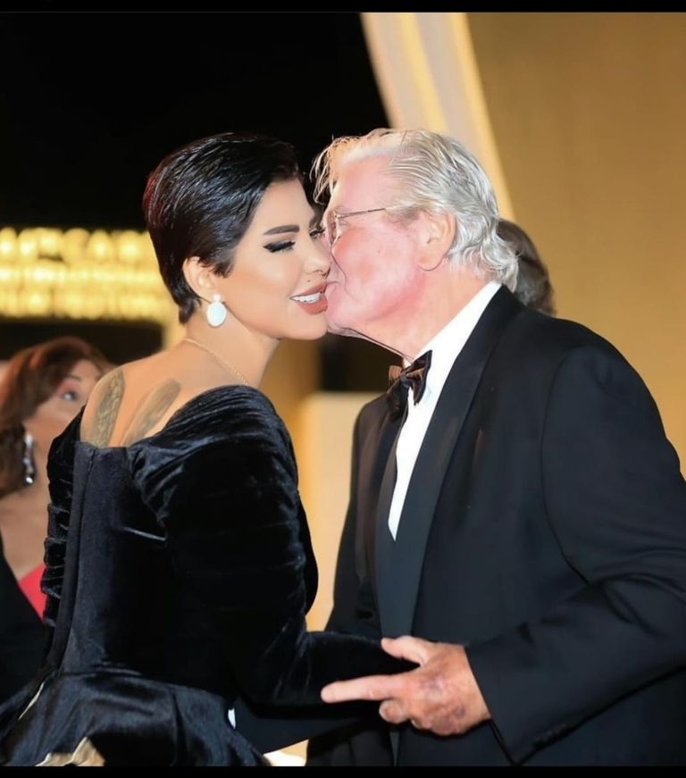 وأثارت صورة تجمعها بالفنان حسين فهمي موجة من الجدل، إذ ظهر خلالها وهو يقبلها، وعلى وجهها ابتسامة عريضة.