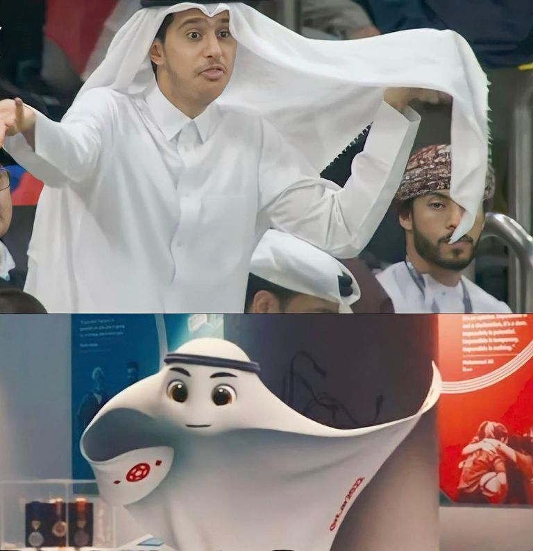وأرجع مستخدمو الإنترنت في الصين شهرة المشجع القطري إلى التشابه الكبير بين مظهره وبين تميمة مونديال قطر "لعيب".