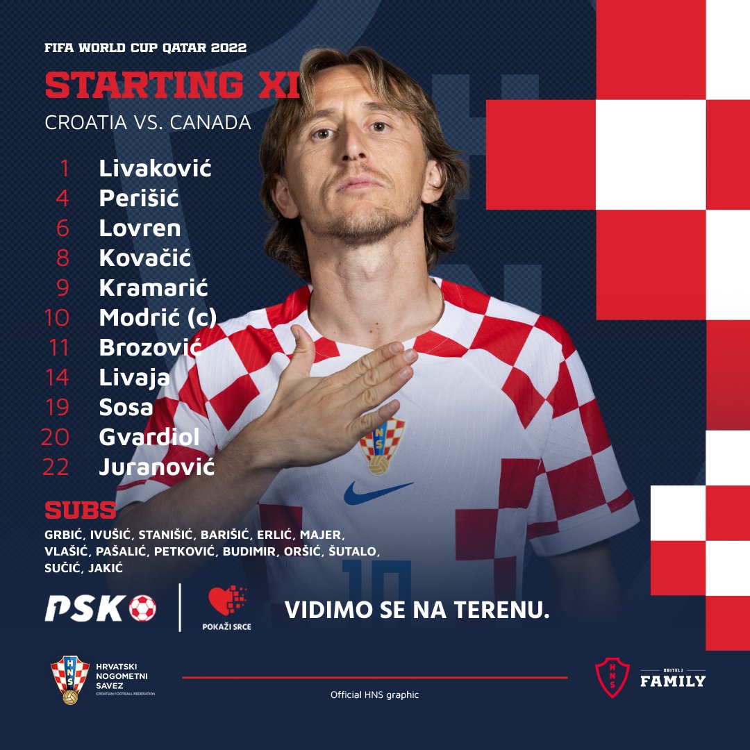 التشكيل الرسمي لمواجهة كرواتيا المرتقبة أمام كندا في كأس العالم 2022
