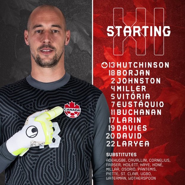 في حين أعلن جون هيردمان، المدير الفني لمنتخب كندا، عن تشكيل فريقه لمباراة منتخب كرواتيا، والذي جاء كالتالي: