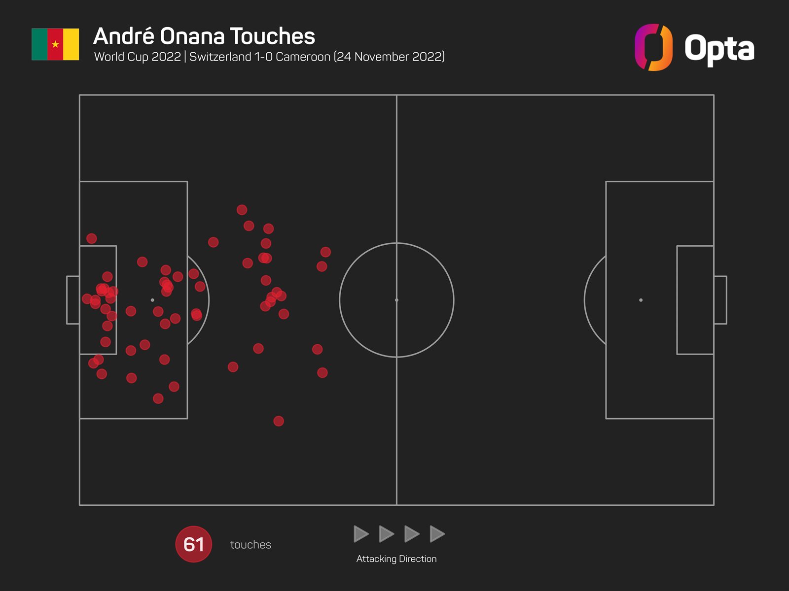 في مباراة سويسرا أصبح أونانا أكثر حارس في كأس العالم 2022 لمسا للكرة برصيد 61 مرة.