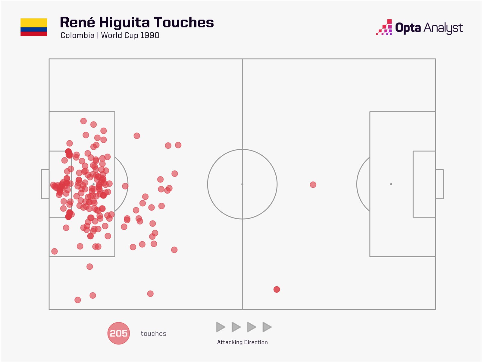 في 1990 لمس هيجيتا الكرة 205 مرة وهو ما انتهى بخطأه التاريخي أمام الكاميرون نفسها.