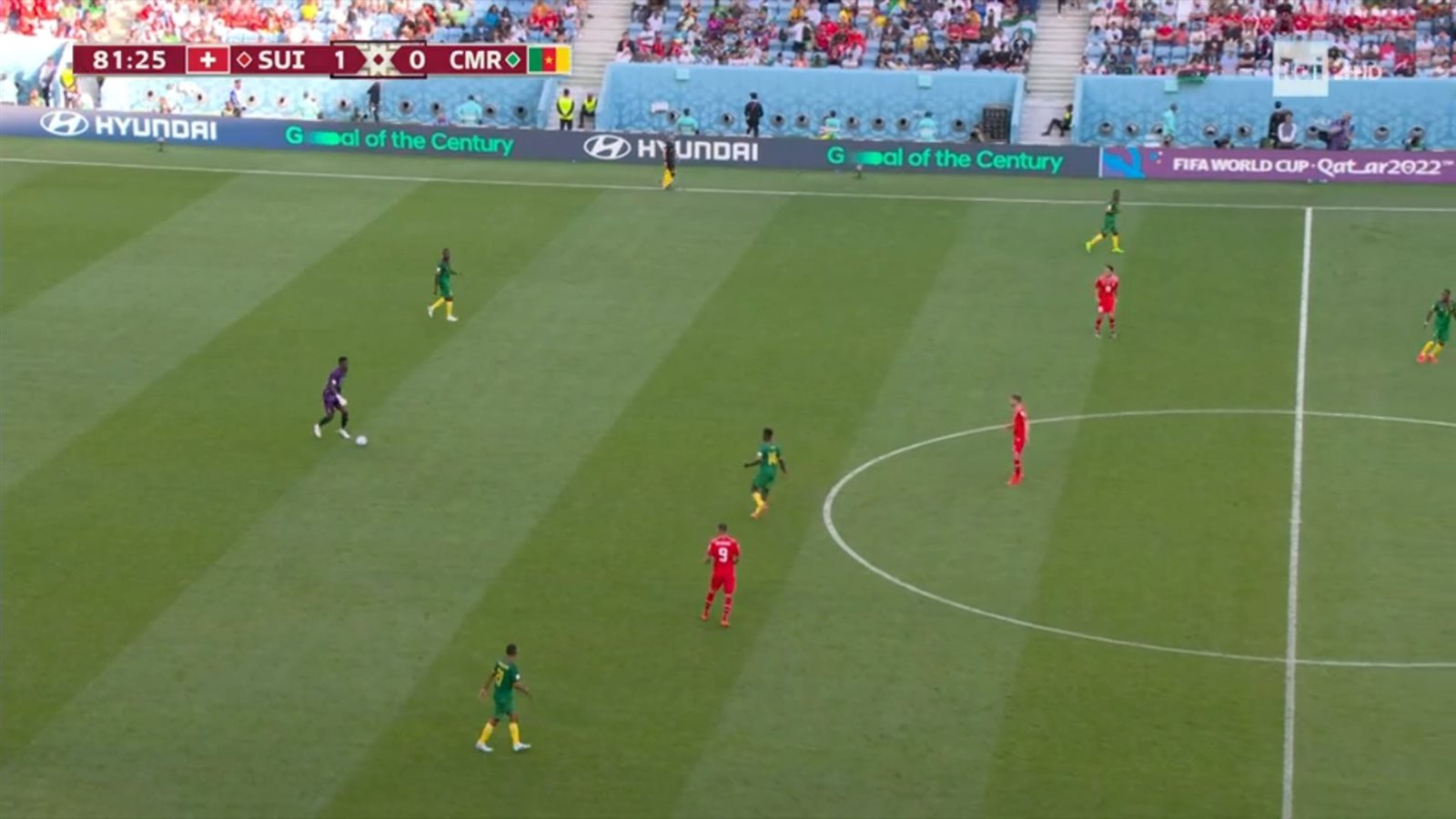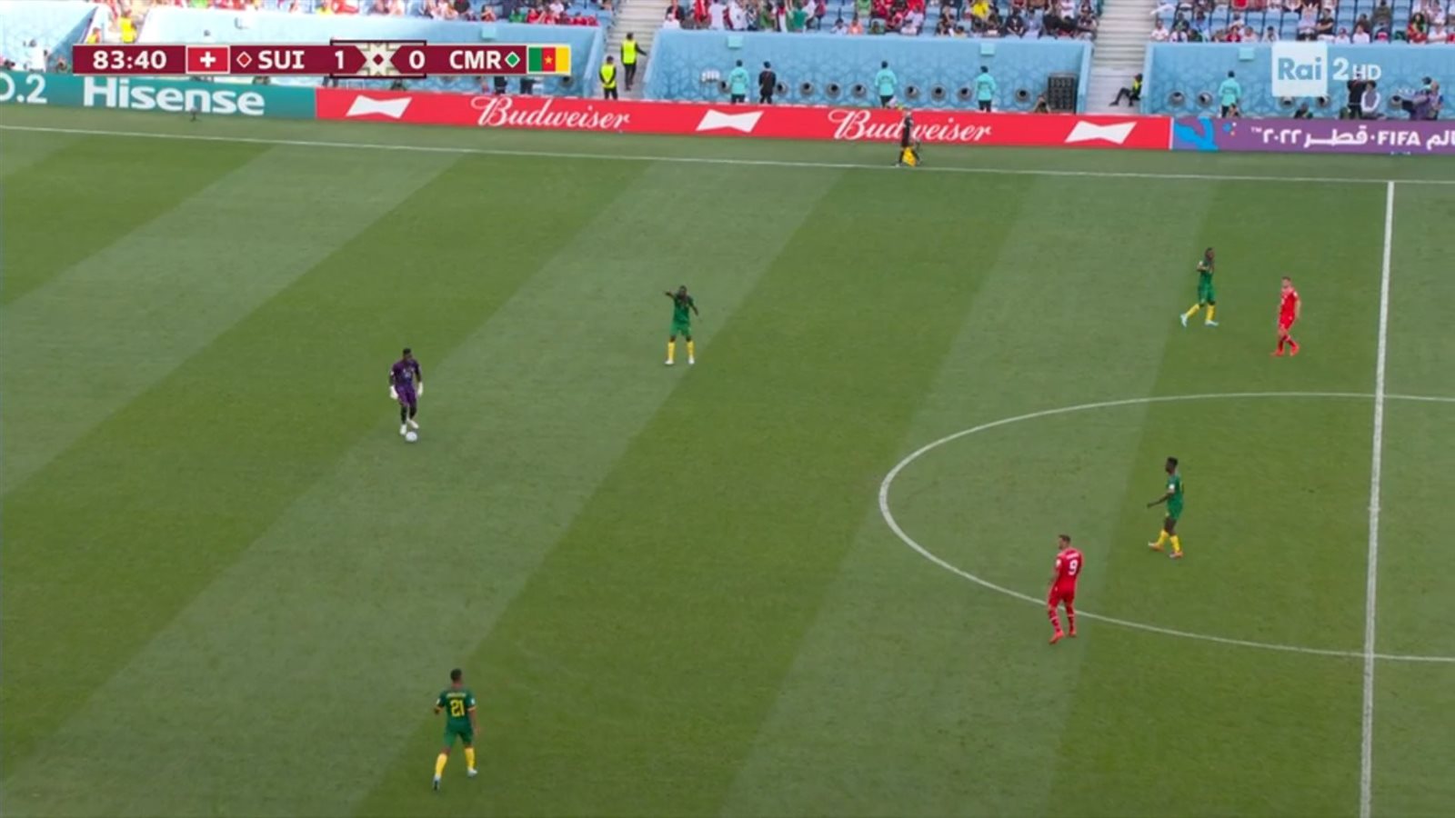في بعض اللقطات كان تقدم حارس الكاميرون مبالغا فيه، كما في الصورة التالية.