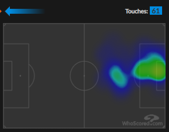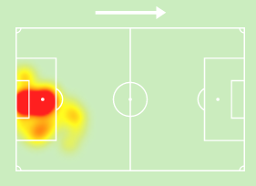 كما توضح الخريطة الحرارية التالية أماكن تمركزه مع الفريق الإيطالي وهو ما يقترب بعض الشيء من مباراة سويسرا.