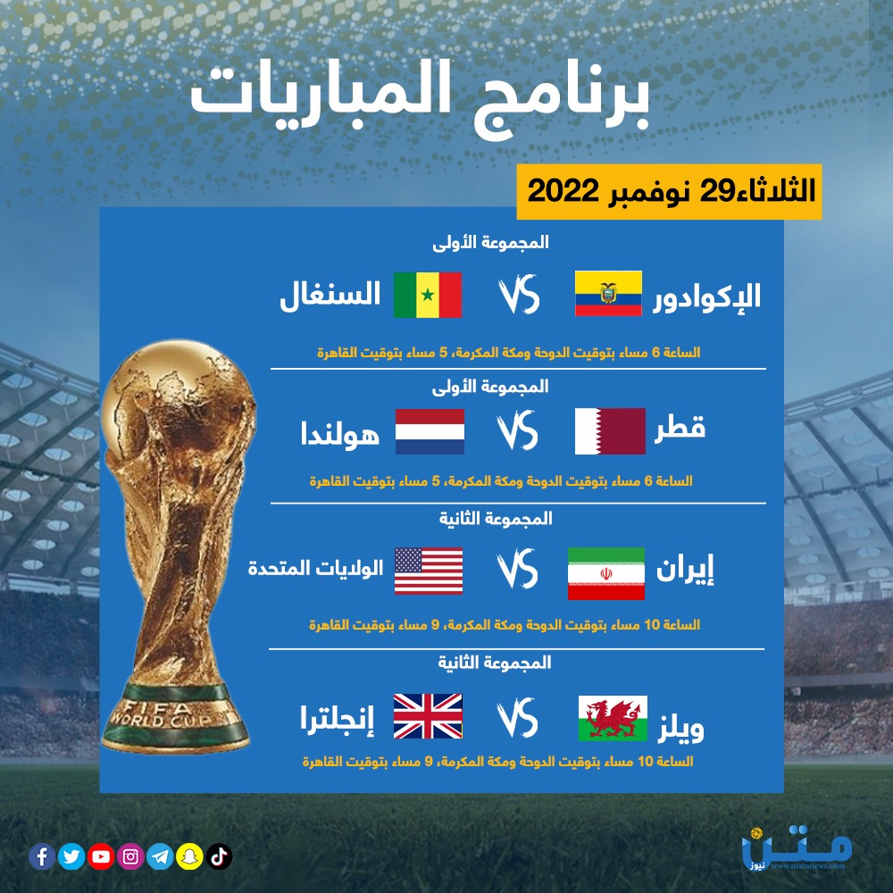 مواعيد مباريات اليوم الثلاثاء في كأس العالم 2022