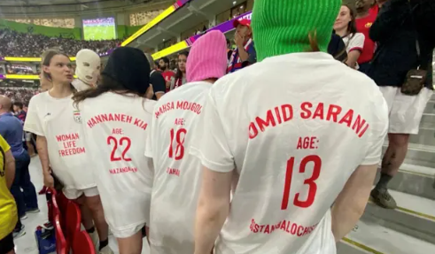 وجاءت الاحتفالات بعد أن سعى المشجعون خارج الاستاد في الدوحة لتسليط الضوء على الاحتجاجات وقمع الحكومة الإيرانية، حيث قال أحد الجماهير الإيرانية: "يجب أن يعرف الجميع عن هذا ليس لدينا صوت في إيران."