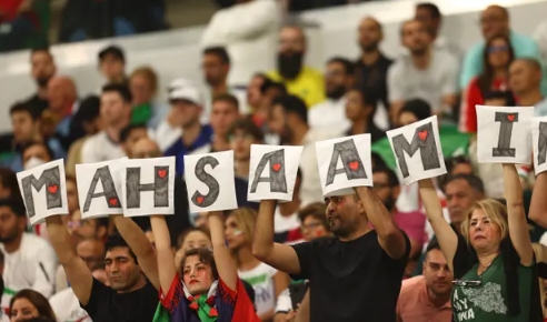وتحت ضغط دعم المحتجين في الداخل علنًا، رفض المنتخب الإيراني غناء النشيد الوطني في مباراته الأولى ضد إنجلترا التي خسرها بنتيجة 6-2. لكنهم غنوها قبل المباراة الثانية، بفوزهم 2-0 على ويلز، ومرة أخرى يوم الثلاثاء، وعندما خسرت إيران أمام إنجلترا، كانت هناك احتفالات في طهران أيضًا.