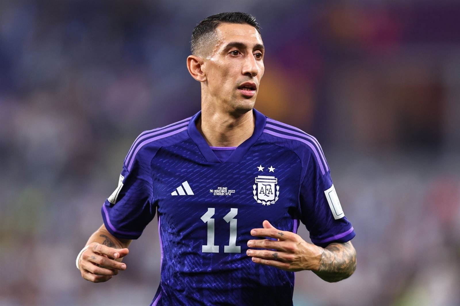 وتعرض دي ماريا للإصابة في عضلات الفخذ خلال مباراة الأرجنتين وبولندا، الأخيرة في مرحلة المجموعات، اضطرته للخروج في الدقيقة 59، وهو اللقاء الذي انتهى بفوز المنتخب الأرجنتيني بهدفين نظيفين.