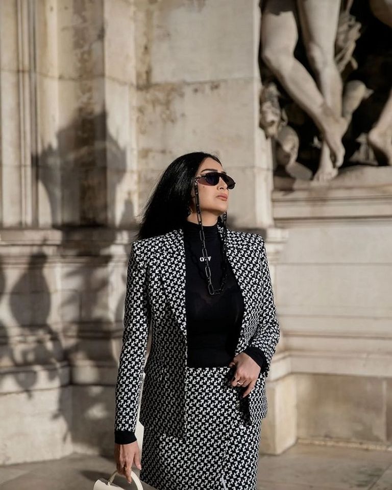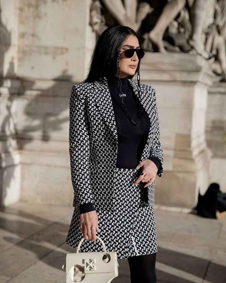 ونشرت غادة عبدالرازق الصور عبر حسابها بموقع إنستجرام، وظهرت خلالها بإطلالة أنيقة، مكونة من تنورة قصيرة وتوب أسود شفاف، نسقت معهما حقيبة بيضاء، فيما تركت شعرها الأسود منسدلا على كتفها مع مكياج هادئ.
