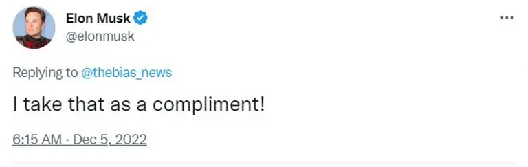 حيث ردّ إيلون ماسك على حساب في تويتر شارك جزءًا من منشور ويست، قائلًا "تلك مجاملة لطيفة منك".