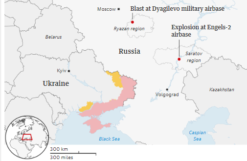 أثارت الانفجارات في قاعدتين جويتين روسيتين بعيدتين عن الخطوط الأمامية احتمالية إيجاد كييف طريقة لاستهداف القاذفات بعيدة المدى الروسية المستخدمة في الهجمات ضد البنية التحتية لأوكرانيا.
