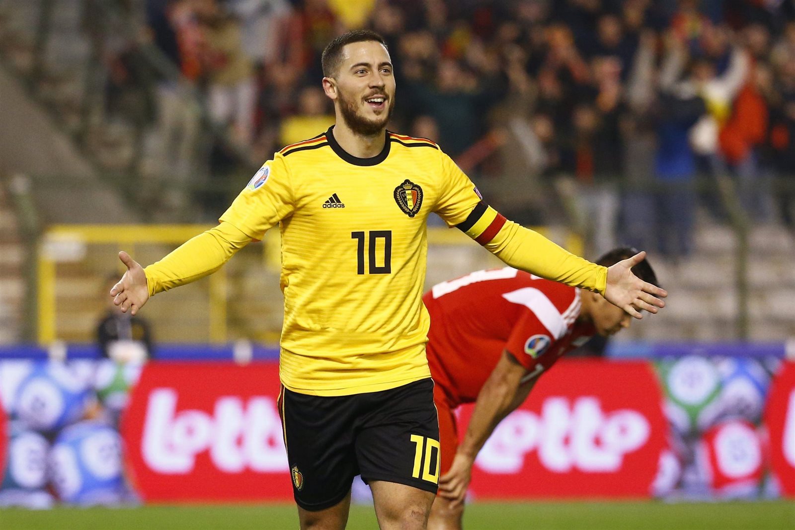 ولعب هازارد بقميص منتخب بلجيكا 126 مباراة، سجل خلالها 33 هدفًا وصنع 36 آخرين.