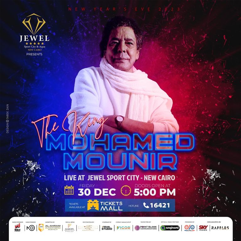 يحيي النجم المصري محمد منير، حفلا يوم 30 ديسمبر في منطقة القاهرة الجديدة في العاصمة القاهرة.