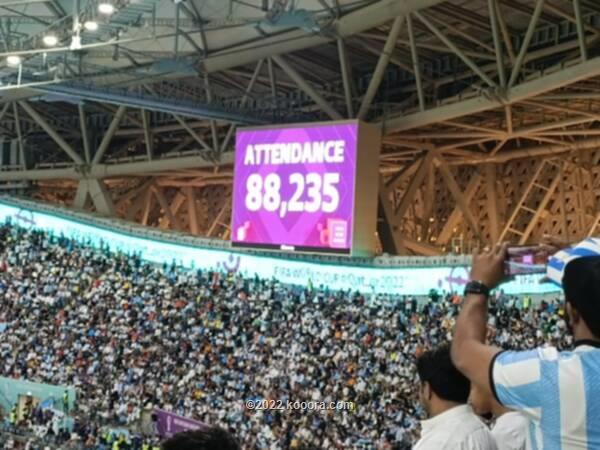 وكانت مواجهة الأرجنتين وهولندا حضرها 88 ألفا و235 مشجعا، حسب الاتحاد الدولي لكرة القدم "فيفا"، وذلك في مواجهة ربع نهائي كأس العالم قطر 2022.