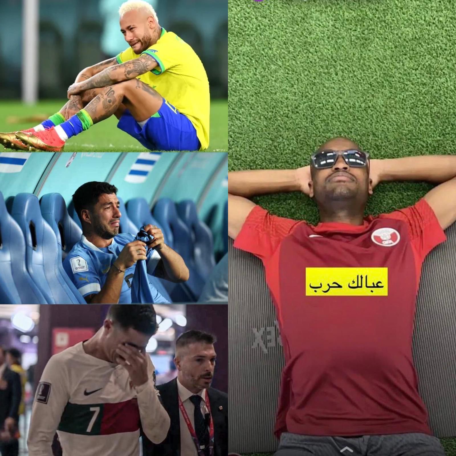 تداول ناشطون عبر مواقع التواصل الاجتماعي، صورة متداولة تبرز بكاء نجوم عالميين بسبب خروجهم من مونديال قطر 2022.